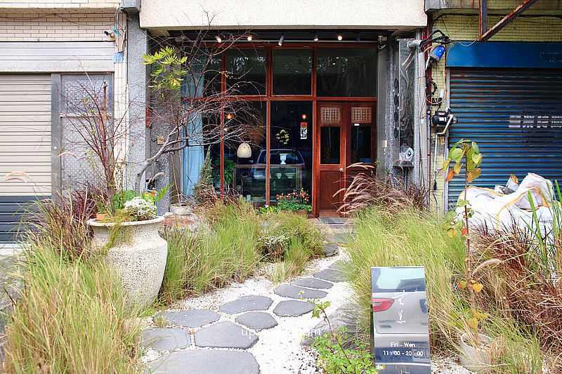 看到門口這一場景,近年很流行栽種的植栽荒野風草地,鋪上鵝卵石與白色石子,日式石板,多了種日式風格,與一旁一整排老宅,這裡顯得很絕美,新竹網美景點推薦,美拍。