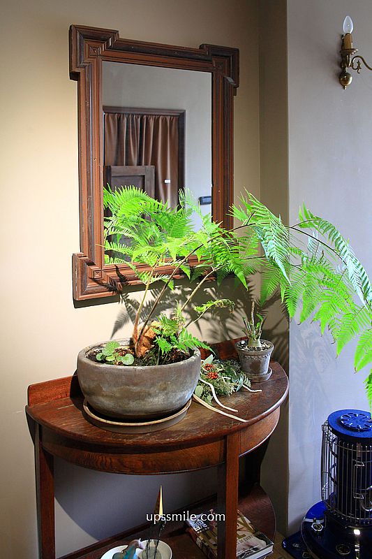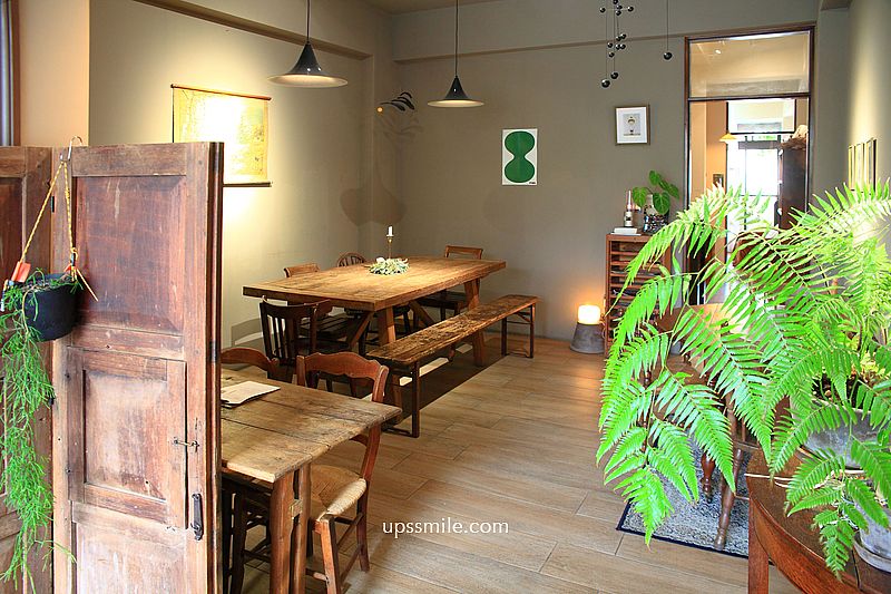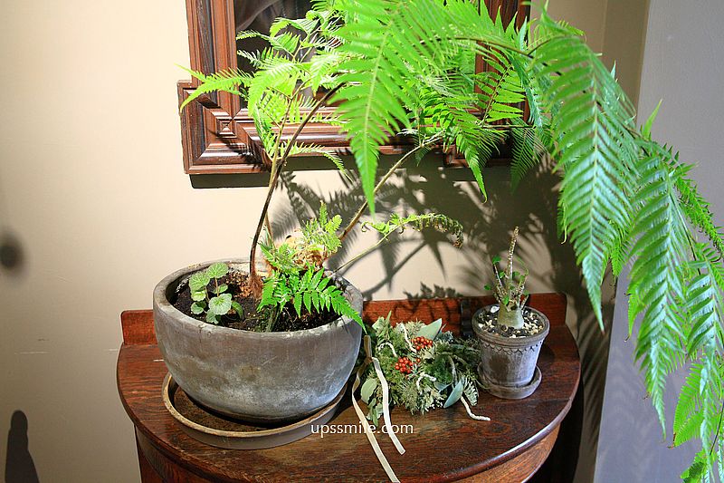 走上二樓,別有洞天,分成前後兩區空間,日式裝潢,很耐人尋味,隨處可見綠色植栽妝點,那抹綠,散發日式氛圍。