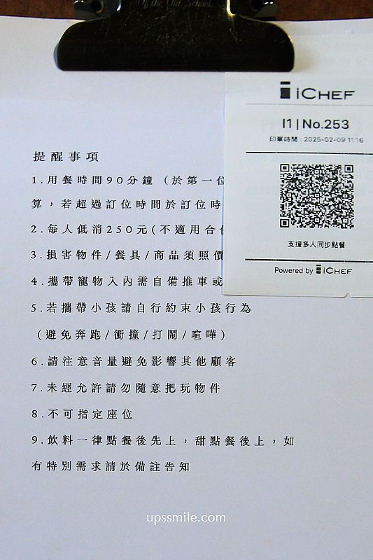 無恙菜單,掃描QRcode點餐,可見菜色內容,每人低消250元,用餐限90分鐘,主打中日式定食,提供簡餐、輕食、甜點、茶飲及咖啡,凡點定食套餐均附冬瓜檸檬一杯與甜點一份,欲更換其他飲品可折50元,會酌收10%服務費。更多線上菜單。