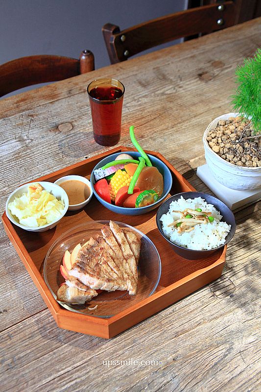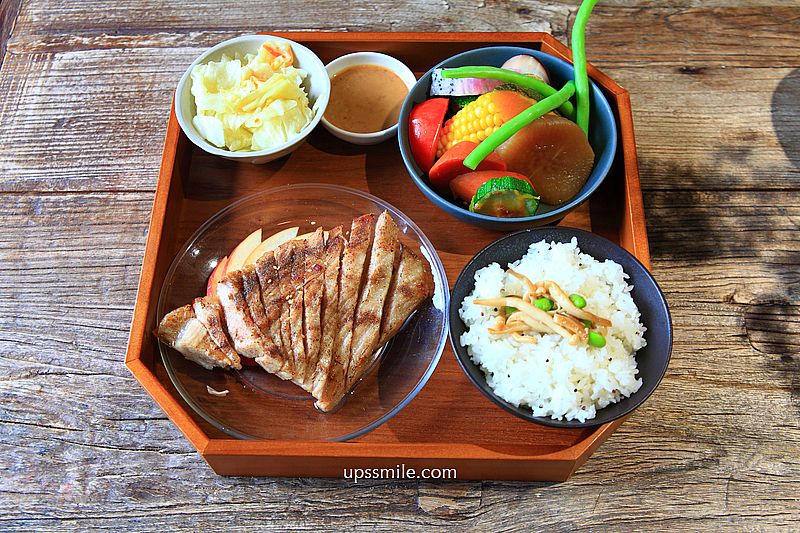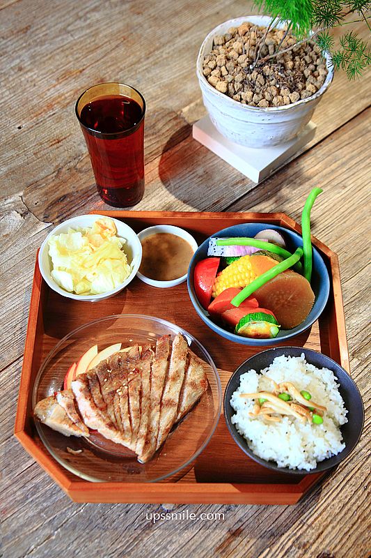 烤松阪豬套餐430元,以上餐點附一杯冬瓜檸檬(可補差價換其他飲料)和瑪德蓮一份,每一套餐都木盤裝好,宛如日式定食陳列,一整套餐很精緻,主餐搭配米飯與蔬菜,主打無過度調味的料理,特別符合這健康世代,光看就很食指大動。
