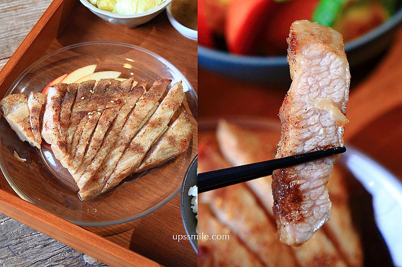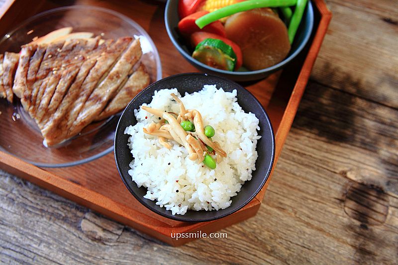 米飯煮得很好,粒粒分明,飽滿米飯,搭配蔬菜與松阪豬吃,每口都讓人滿足。