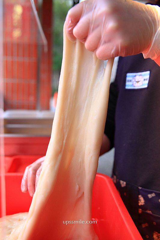 光看這些好吃的麻糬,拉起來非常彈,宛如麻糬瀑布,一整大糰麻糬,現包麻糬,不添加防腐劑,每天新鮮出爐。