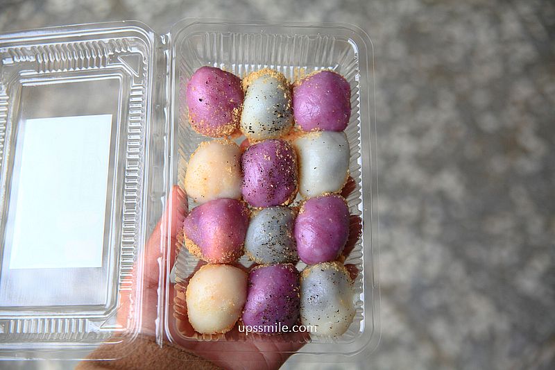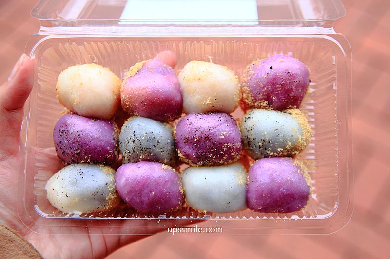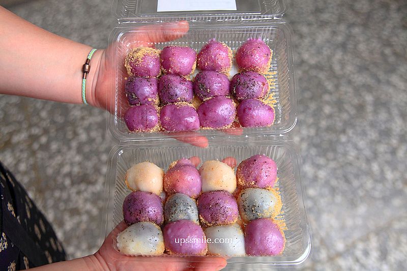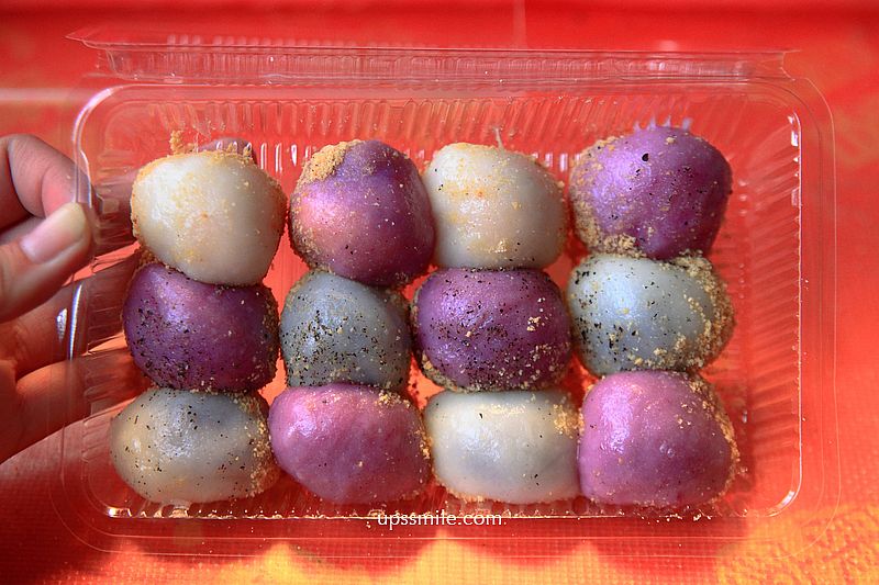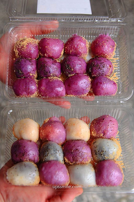 J歌古早味客家手工麻糬 推薦全紫薯麻糬一盒12顆120元,有花生、芝麻、紅豆、綜合、雙拼麻糬口味