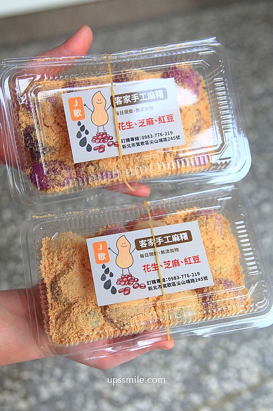 新北美食,鶯歌美食,好吃台北麻糬推薦,橫掃IG網美打卡鶯歌古早味麻糬,土地公生日最愛甜品麻糬,J歌古早味客家手工麻糬位於新北市鶯歌區尖山埔路245號,鶯歌國中正門斜對面客家麻糬,馬路旁街邊店攤位,現包麻糬,不添加防腐劑,每天新鮮出爐,賣完明日請早,每到週末鶯歌排隊美食,傳承客家味麻糬,堅持手工麻糬做法,從磨米到製作,減糖餡料,樸實古早味美食,點了古早味麻糬一盒12顆100元、棋盤格麻糬一盒12顆110元、全紫薯麻糬一盒12顆120元、原味麻糬15個100元(沾外皮),有花生、芝麻、紅豆、綜合、雙拼麻糬口味,麻糬QQ彈牙嫩口,甜而不膩,神等級好吃客家麻糬,鶯歌在地美食推薦,附J歌古早味客家手工麻糬菜單。