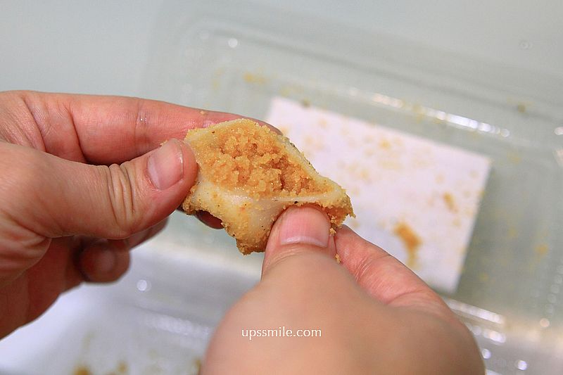 麻糬包入的內餡有花生、芝麻、紅豆配料,當日製作,不添加防腐劑,讓大家吃得美味,同時兼具健康。花生口味,滿滿花生香餡的麻糬,可吃到花生帶點顆粒感,很香不甜,好Q彈麻糬,每口是滿足。
