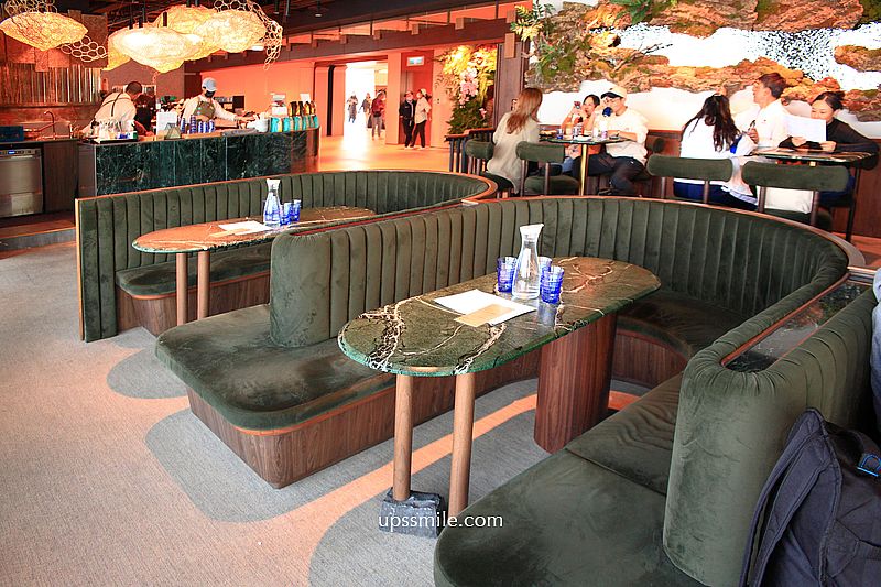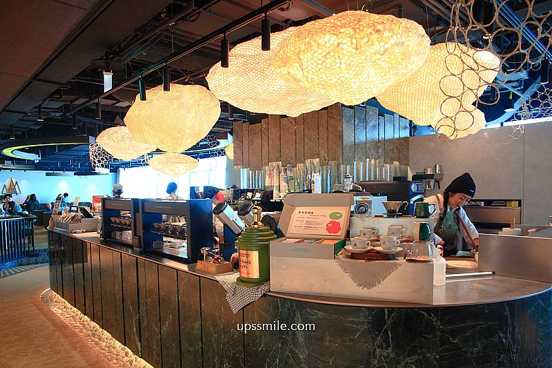整個開放式咖啡吧台,墨綠色大理石吧台,很有美感,一覽無遺招呼來訪這裡的世界各國來台灣玩的旅客,從一樓就會先分是內用或外帶區,一上前,服務人員會帶位。