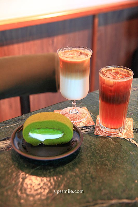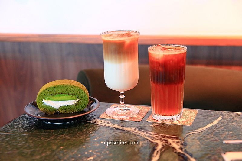 抹茶捲200元,價格不便宜,高空景觀咖啡廳所帶來的價值,高貴不貴了,使用丸九小山園抹茶粉製作的抹茶捲,加入生乳,爆漿的抹茶餡料,抹茶的苦甘,鮮奶油步奶膩,抹茶醬搭配蛋糕體吃,清爽不膩口,抹茶控必點。