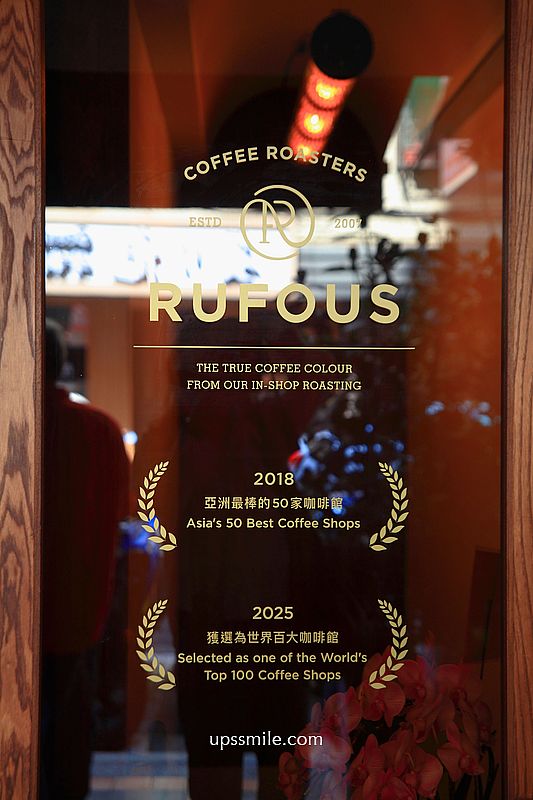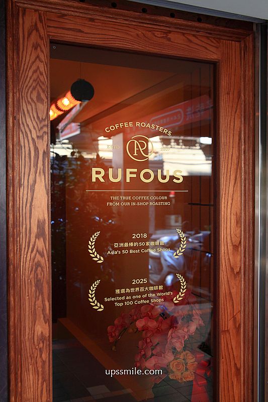 RUFOUS COFFEE ROASTERS 榮獲世界百大咖啡館,台灣唯一入榜,西班牙馬德里2025年咖啡展公布,2025年百大名單,排名第85位,世界百大咖啡館完整名單,讓人都想朝聖起來,特別把這榮耀寫在玻璃門上,充滿細節,分享喜悅,咖啡實力屢獲國際肯定,2018年亞洲50最佳咖啡館、2025世界百大咖啡館等。