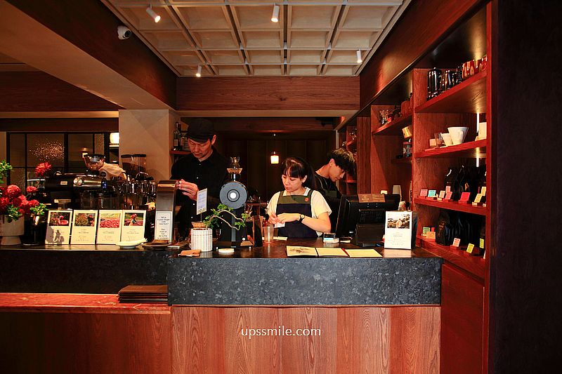 開放式木質咖啡吧台,迎接每位來訪的客人,一覽無遺,小巧空間,整個靈活運用,側邊木櫃上陳列店家販售的自家烘焙「rufous coffee咖啡豆」,喜歡也可購買。