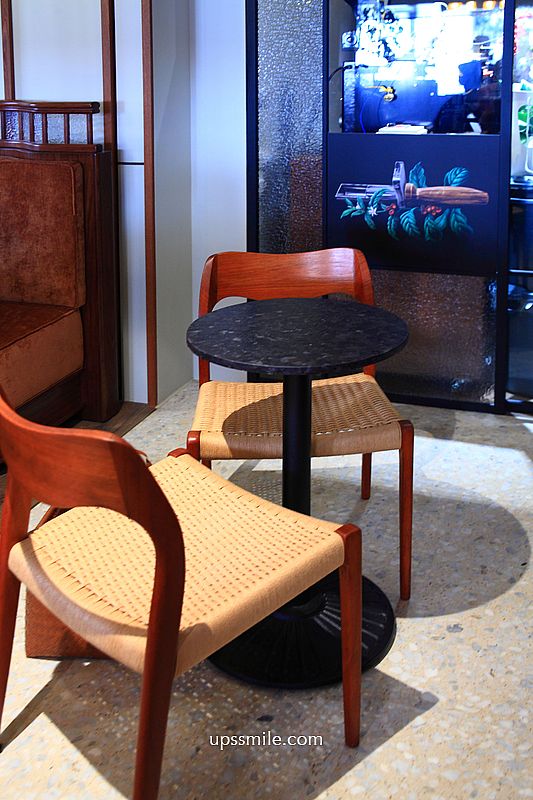 RUFOUS COFFEE ROASTERS 2,小小空間,與創始店的RUFOUS COFFEE ROASTERS,風格大不同,也與之前台北基隆路關掉的RUFOUS COFFEE ROASTERS 2,風格有異,打造木質調風格貫穿全局,老闆特地從海外訂製高椅背座椅、圓角設計桌面、鑲嵌花窗的復古卡座搭配木飾條細節,連地磚也鑲嵌了銅飾,完美詮釋20世紀摩登咖啡館經典美學,歐風咖啡廳氛圍,耐人尋味。