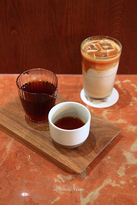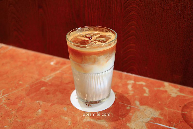 冰咖啡拿鐵180元,漸層色,玻璃杯,中淺烘焙,堅果調,很乾淨明亮,不奶膩,好喝順口。