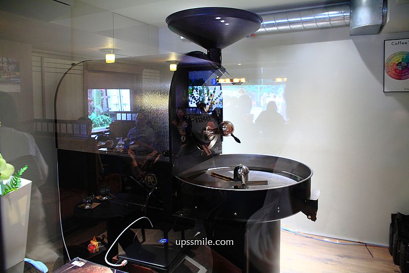 角落單獨一間烘豆室,可見擺放一整大台GIESEN烘豆機。