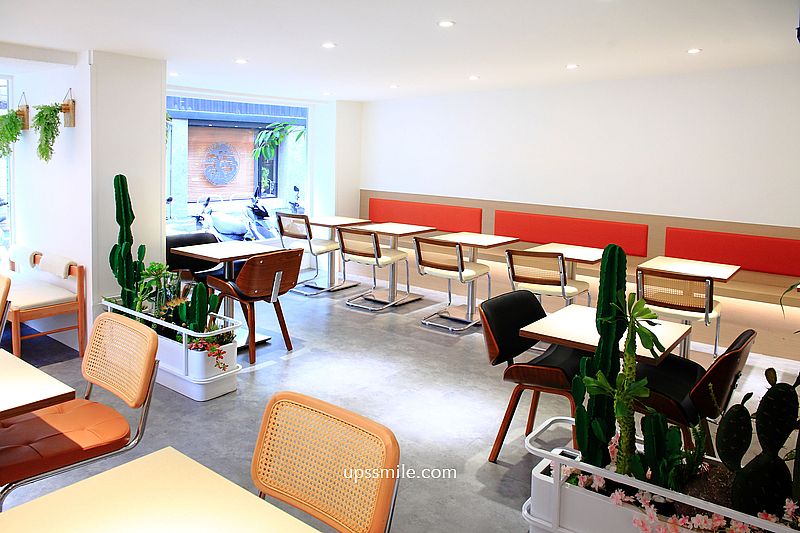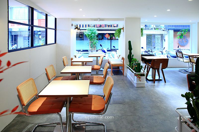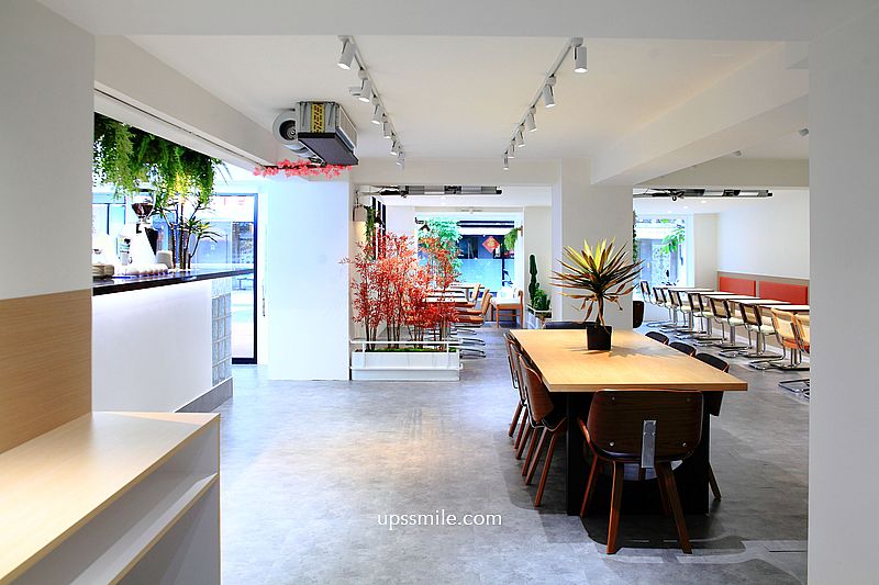 映入眼簾,寬敞大空間,老宅改造,搖身一變成簡約現代的網美空間,可容納60幾人空間,分成兩人、四人、一人高腳椅座位,水泥灰粉刷地板,植栽妝點,簡潔俐落的現代設計氛圍,置身於城市叢林中的小型花園。
