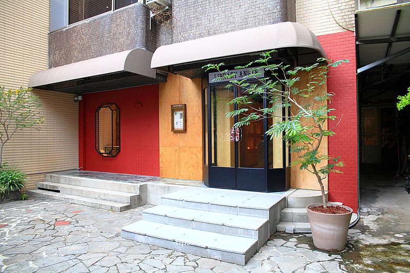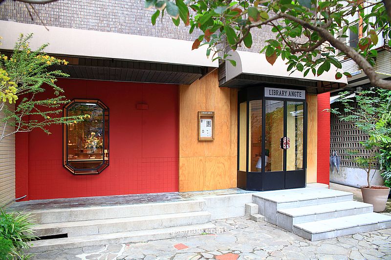 Library Angte紅茶圖圕館位於台北市士林區克強路上,從門口外牆上,往庭院內看,有專屬自己庭院,寸土寸金台北,能有這樣庭院店面,實在很幸福,更感受到士林與天母一帶住宅好品質,讓萍子想到「台北民生社區超人氣名店but.we love butter奶油餅」、台中「BUTTER HOTEL奶油飯店」一曲同工之妙氛圍,用裝潢與品牌形象去主打伴手禮專賣店,伴手禮不只是伴手禮店,更是網美打卡景點。