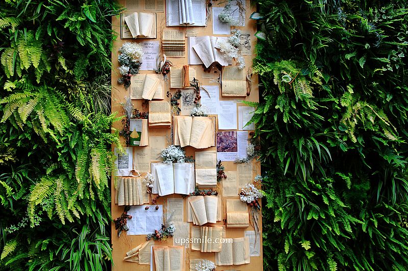走入店內,從庭院就很有戲,彷彿搭上時光機穿梭到另一時空,整個空氣中被凝結,打造這復古風場景設計,和以往對於伴手禮店的印象很不同,好美,牆面規劃歐式復古書的書牆,還未入內秒拍不停。