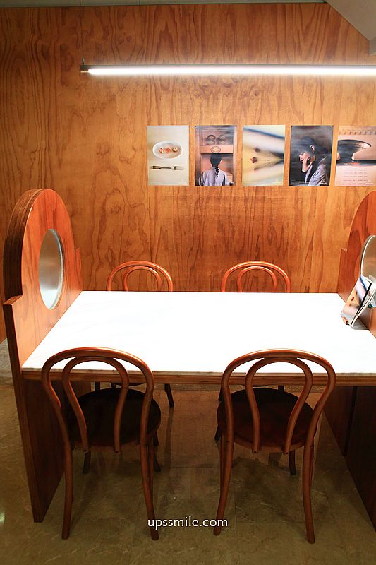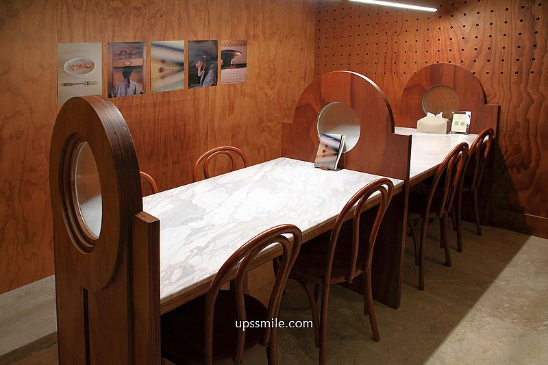 這區打造復古風的體驗用餐區,很本事空間設計的風格,厚實木質桌子,歐式古典書香味,挑選近年很夯的歐式曲線椅,好乘坐,搭配大理石紋路檯面,超美的。