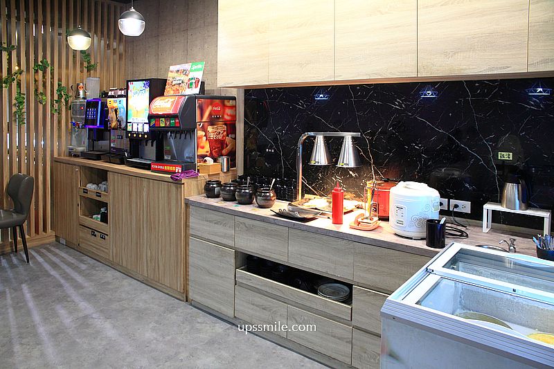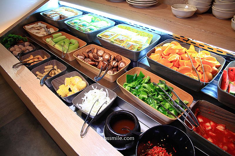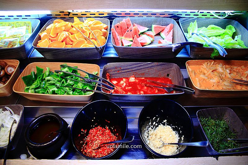 中間規劃開放式空間,陳列醬料與火鍋配料、冰淇淋、炸物、飲料區,無限吃到飽,自助式拿取。