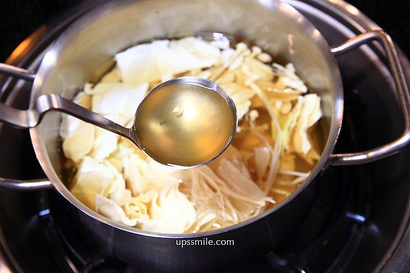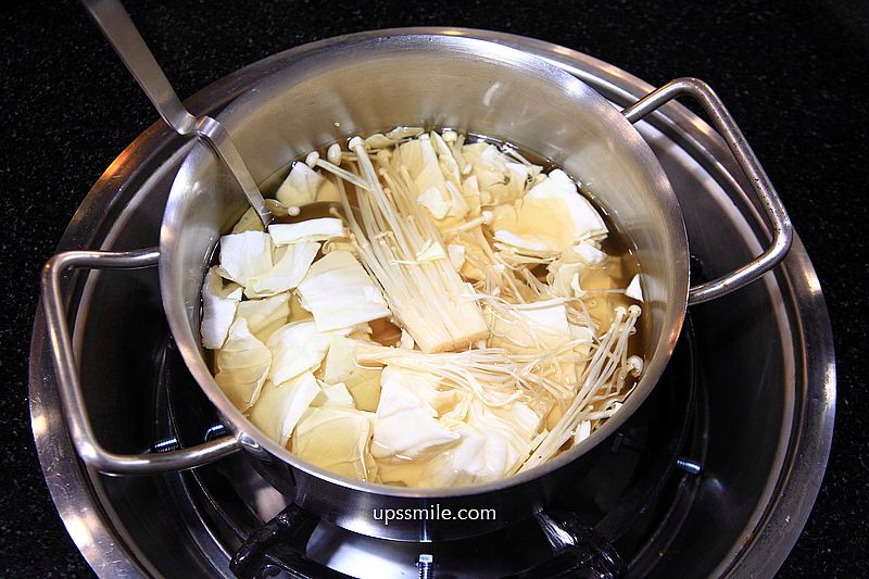 火鍋走昆布湯底,放入高麗菜與金針菇,原味自然湯底,湯頭鮮美甘甜。