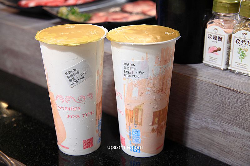 前面有提到,菜單內還可單獨點手搖無限暢飲飲品,飲品選項超過十五種,像是紅茶、奶茶、水果茶通通有,這天選了蜜桃烏龍、荔枝紅茶,獨特果香茶款,搭配燒肉吃,甜滋滋,胃口大開。
