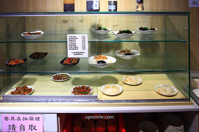 入內後,右手邊規劃小菜專區,限量提供,內用或外帶餐具都在抽屜,自助式拿取。