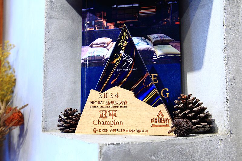 角落可見2024年 PROBAT烘豆大賽冠軍,不容易。