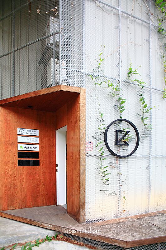 木門與工業風斑駁的紋理,大片透明黑色玻璃窗,充滿自己特色,是間台中風格咖啡廳。
