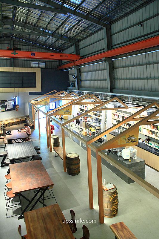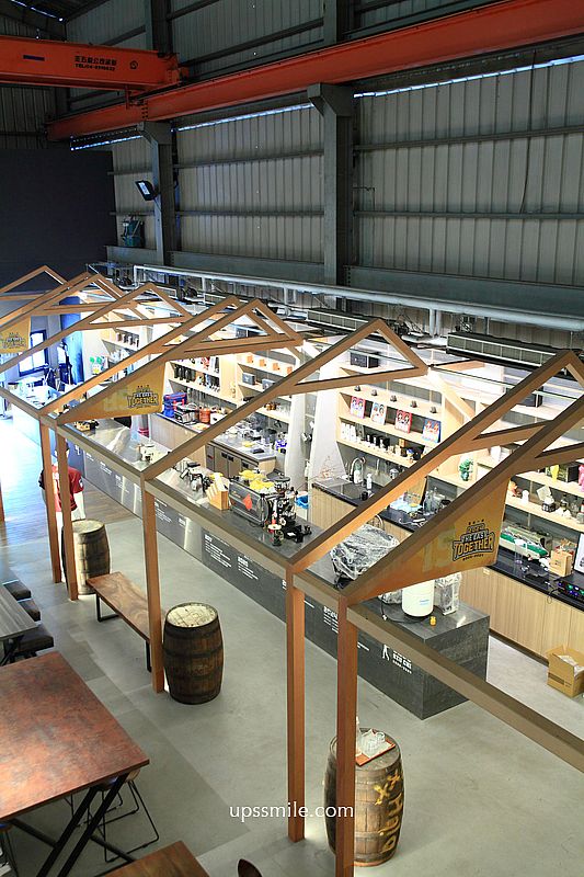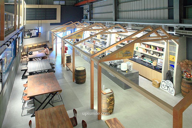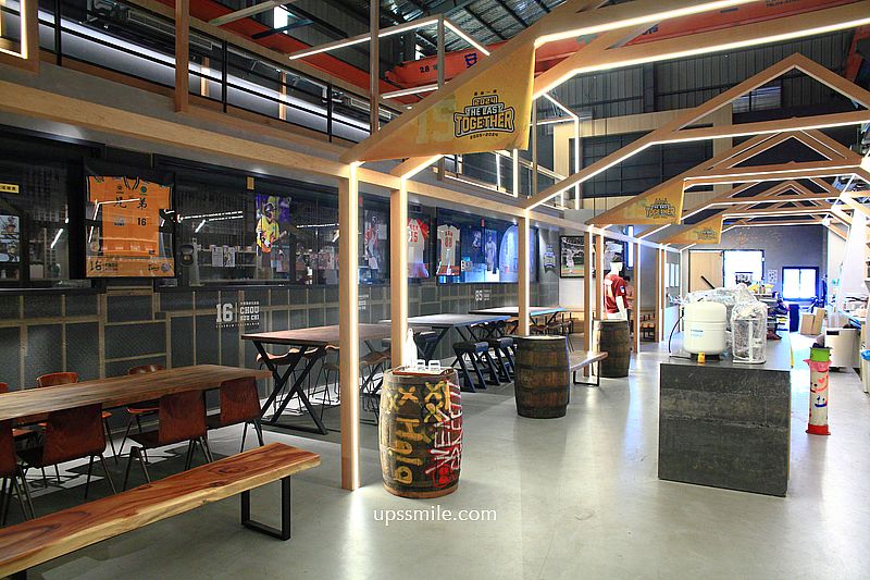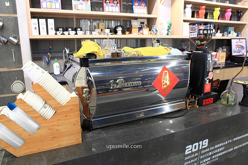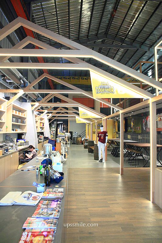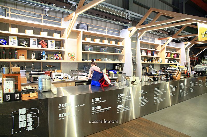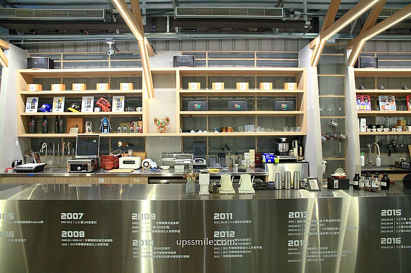 映入眼簾,挑高寬敞三角屋頂,木質地板,木造的格狀造型,金屬質感的咖啡開放式吧台,倉庫風格,和一般的咖啡館很不同設計,鐵皮屋搭配木質裝潢,兩層樓挑高空間,讓人輕鬆喝一杯。
