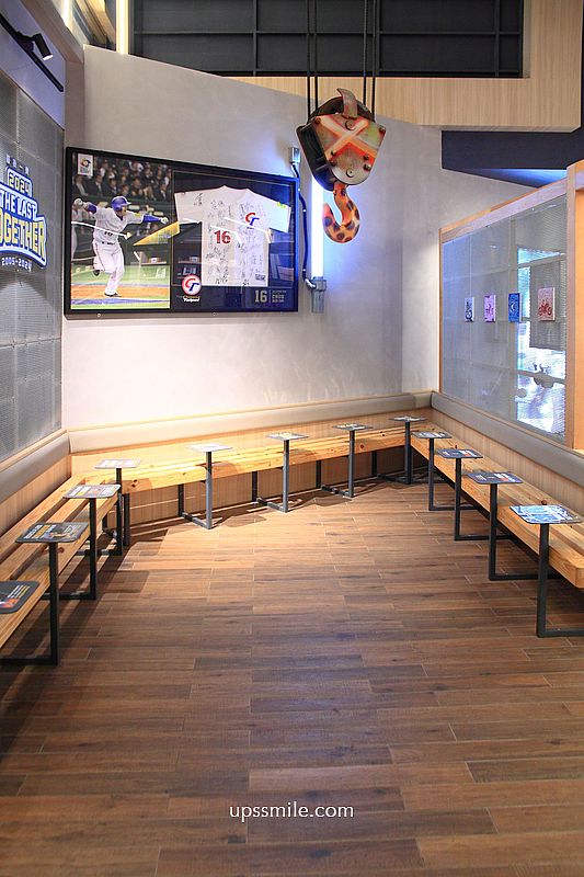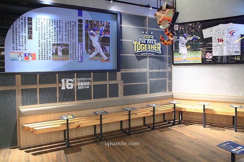 入口處規劃一座位區,開放式木質座位,詳細介紹球員背景,一路棒球生涯。