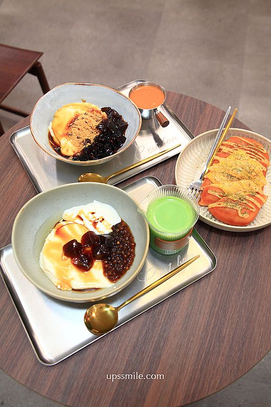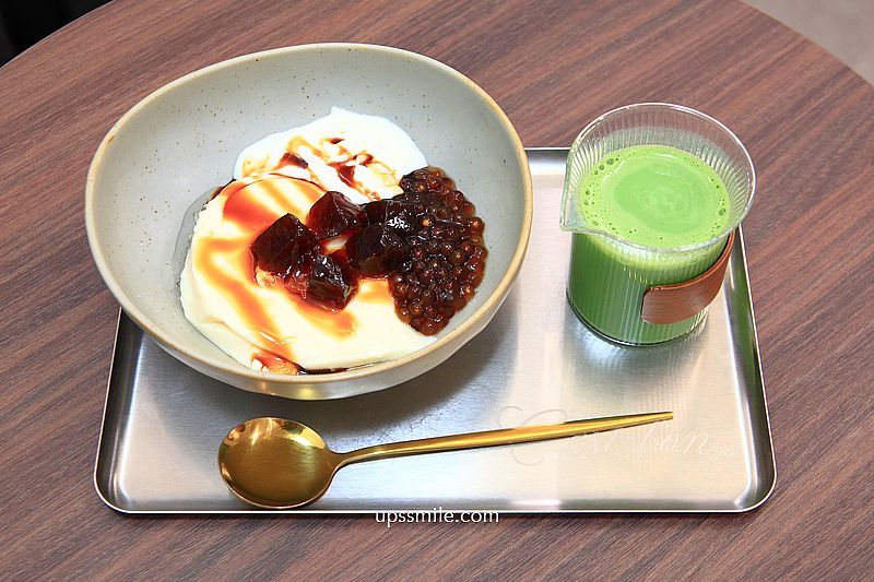 手標泰奶豆花85元,用金屬鐵盤裝,文青風美感豆花呈現。