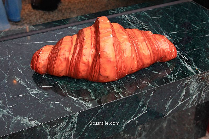 桌上大理石紋理貼皮,搶眼有特色,可拿起的超巨無霸可頌拍攝,免門票景點,這裡是台中最新打卡景點,台中西區景點好好玩。