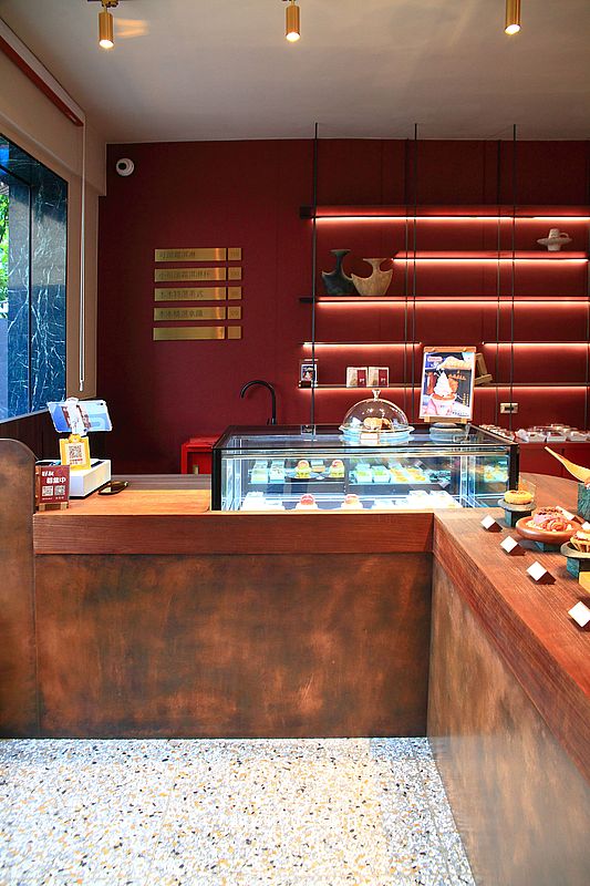 店內空間一樓不大,L型空間,磚紅色檯面,紅磚色背景牆,復古有質感,琳琅滿目麵包與可頌專賣店,陳列很好,一覽無遺多款食材,喜歡自行購買,很多款麵包,得提早買,避免賣光,只能改日買,可提早打電話預約保留麵包。