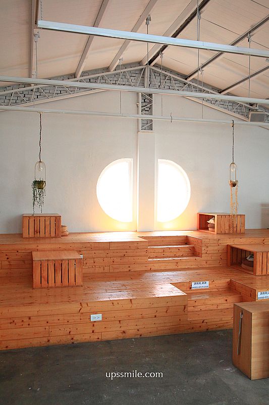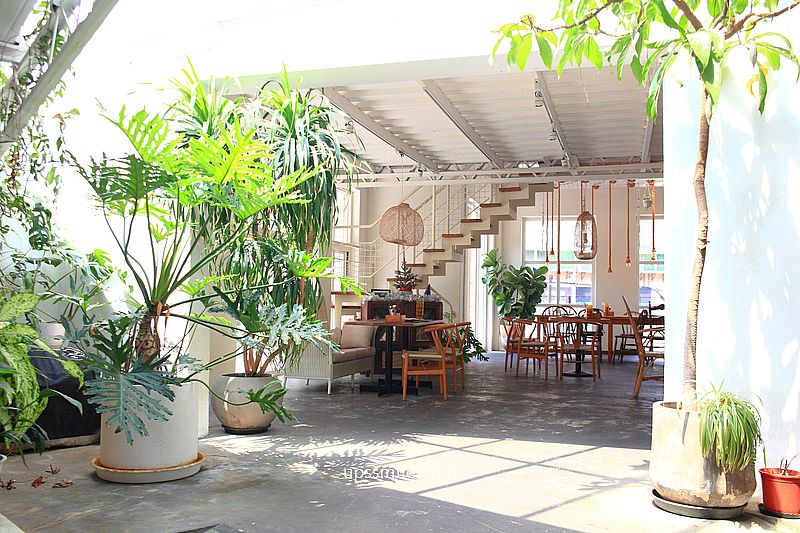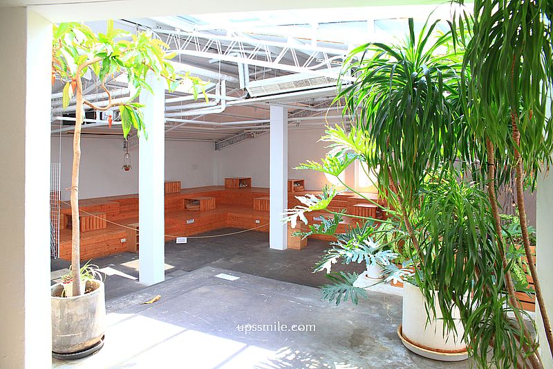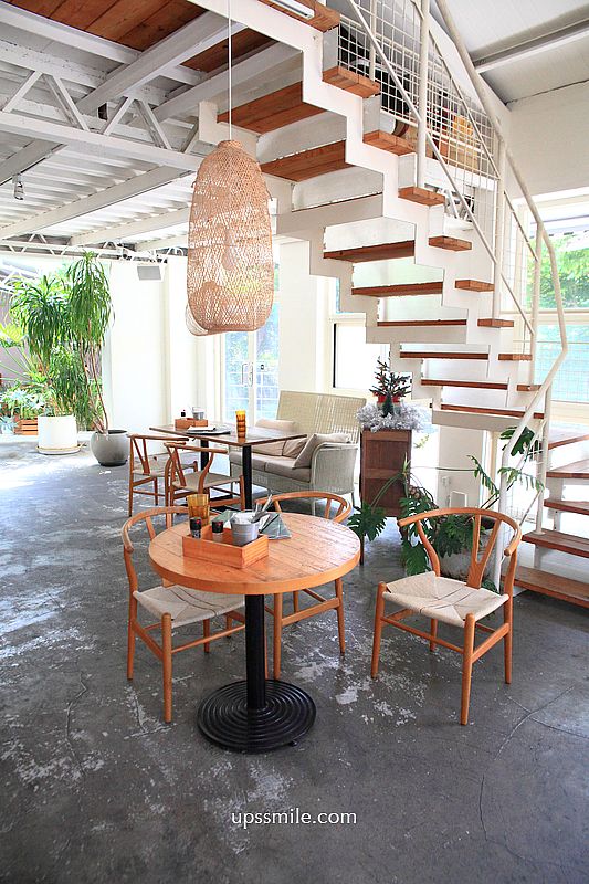 從階梯走上二樓,二樓空間是萍子最喜歡的,別有洞天,二樓空間分成兩個部位,一個是植物很多的桌椅植栽區,另一區是需脫鞋階梯式的階梯區(如上圖)。