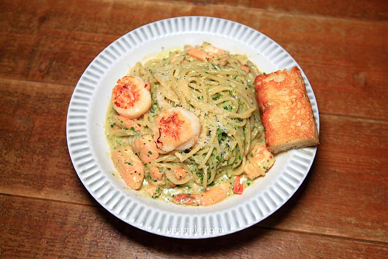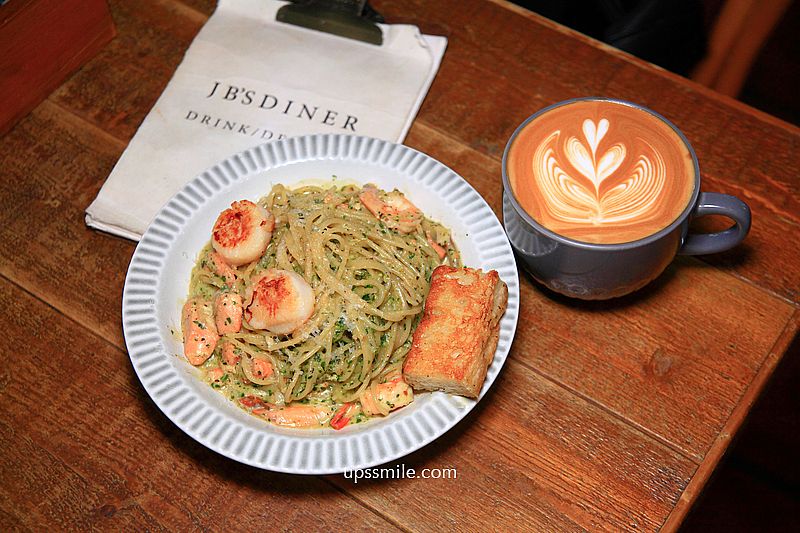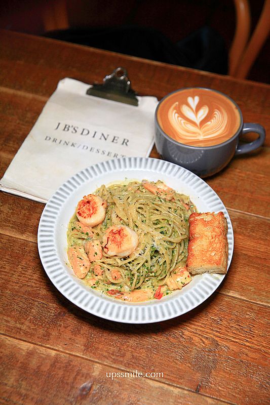 JB’s Diner 推薦羅勒青醬鮭魚干貝麵520元