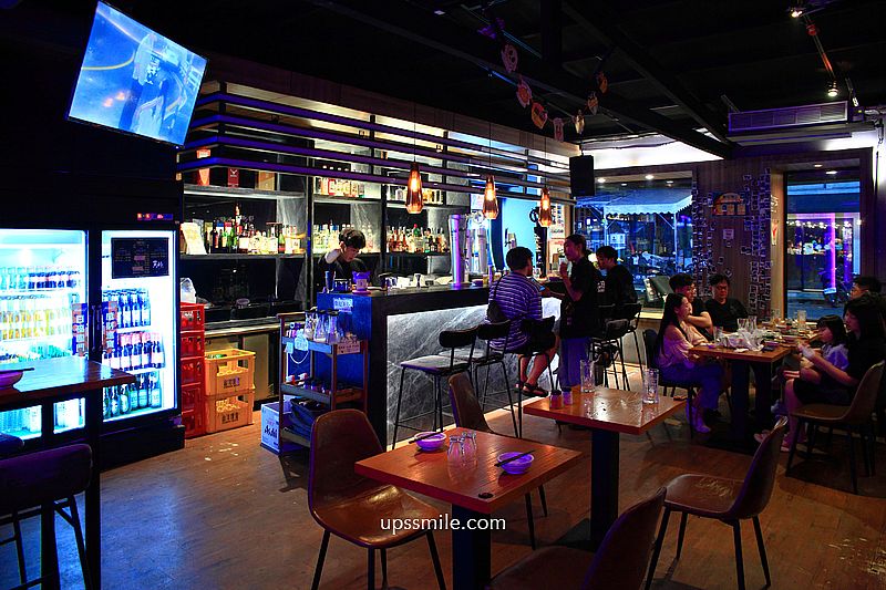 店內一景,分成好幾區座位,木桌搭配塑膠椅,很唯美,特別營造酒吧氣氛,讓人可小酌。