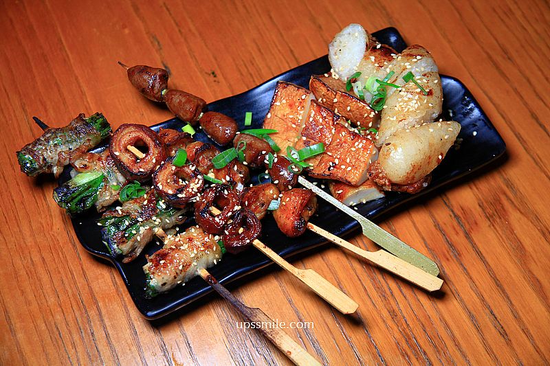這裡的烤物,不管哪款,這天點了豬肉串、雞大腸、米腸、杏鮑菇、雞胗、雞心等,想吃甜不辣,可惜賣光了,整個烤過後,醬汁不甜膩,拿捏恰到好處,烤到入味,肉質鮮嫩多汁,帶點炭香味,撒上芝麻提香氣,每口是滿足,鹹香交織,好好吃。