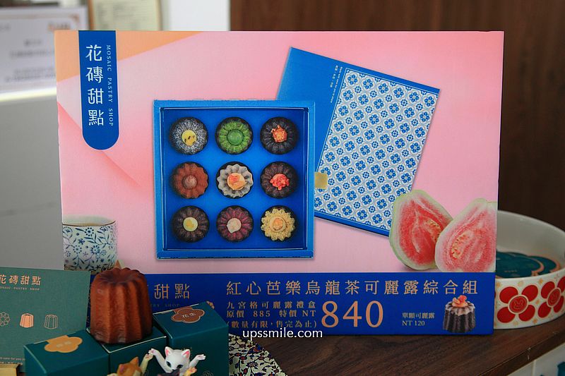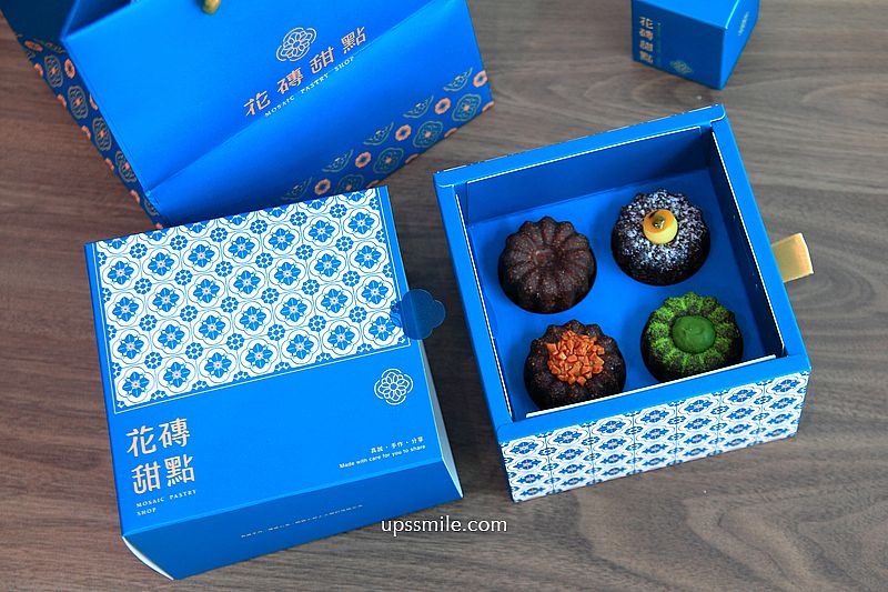 購買這間花磚甜點可麗露,每款都會附提袋,不管送禮或自家當下午茶食用,好適合。