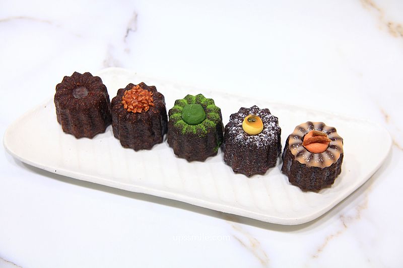 一口氣吃了5款口味可麗露,有百香果口味可麗露、經典原味可麗露、抹茶口味可麗露、焦糖口味可麗露、紅心芭樂可麗露,一字排很有看頭,甜點控要尖叫了。