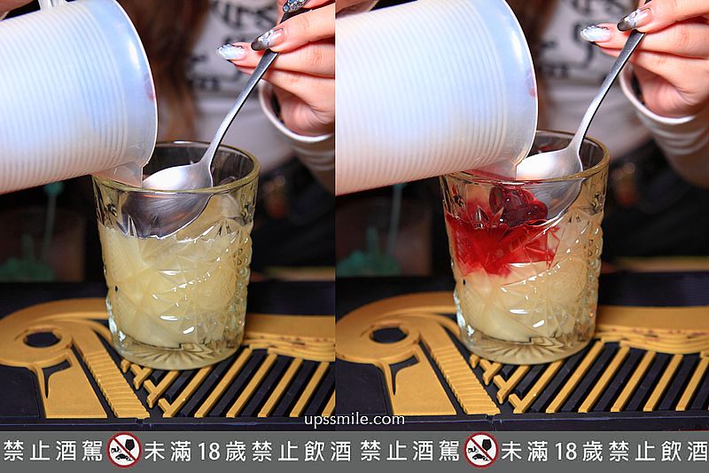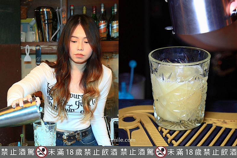 在吧檯前方可見店內服務生妹妹,調酒師很專業,現場製作酒一景。(喝酒不開車,開車不喝酒)