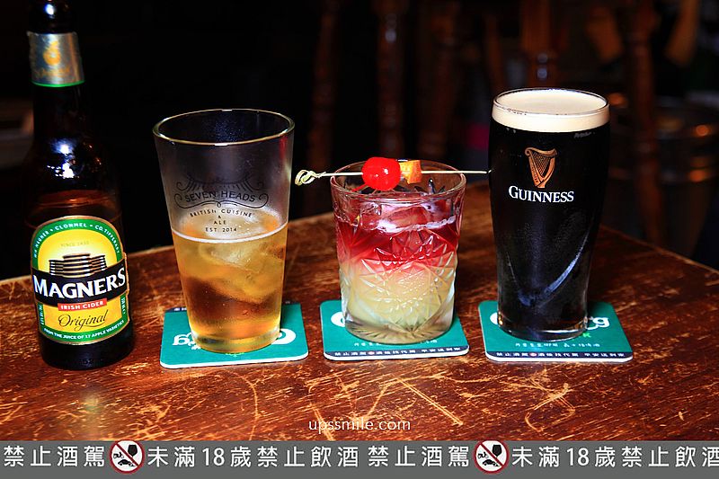 映入眼簾,充滿木質裝潢,復古風色系,牆上美式風格壁畫以及木質格調桌椅,店老闆特別想把在英國享受的美好,將英國當地特色小吃完整的帶回台灣,想要將完整的英式風格與氛圍呈現,不僅是酒的種類亦或是裝潢都仿照英國當地,打造英倫風餐酒館,讓人想一探究竟。(喝酒不開車,開車不喝酒)