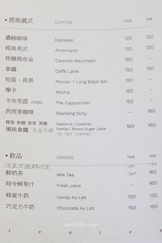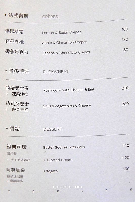 牆面上也可見甜點介紹,十步堂菜單,低消一杯飲品,早午餐套餐只要250元,不收服務費,佛心價,甜點限量推出,來自店家手作甜點,耐人尋味,感受用心。
