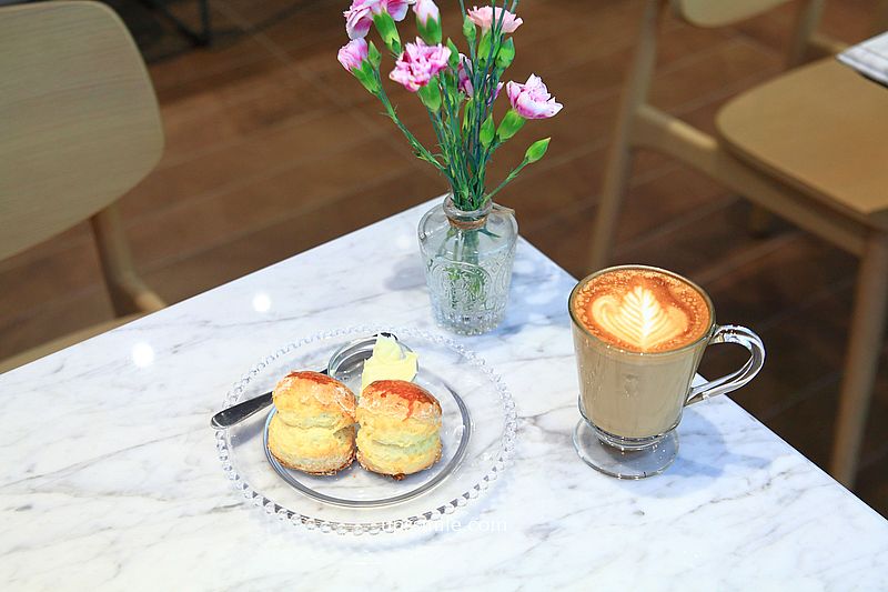 新北土城美食,想找間土城早午餐咖啡廳,隱身土城社區大樓一樓咖啡廳,橫掃IG網美打卡土城景點,十步堂位於新北市土城區學士路12巷5號,門口大片玻璃落地窗,滿滿綠意植栽,這是複合式經營花店,店內擺放英式壁爐,很英國風質感情調,提供英式早午餐、手沖單品咖啡、甜點等,讓人靜心沉澱的土城咖啡店,點了司康2顆120元(鮮奶油或果醬)、熱拿鐵150元,絕美氛圍輕鬆享受早午餐,不定期推出花藝課程可參與,好chill,讓人好喜歡,新北下午茶推薦,土城絕美咖啡廳,附十步堂菜單。