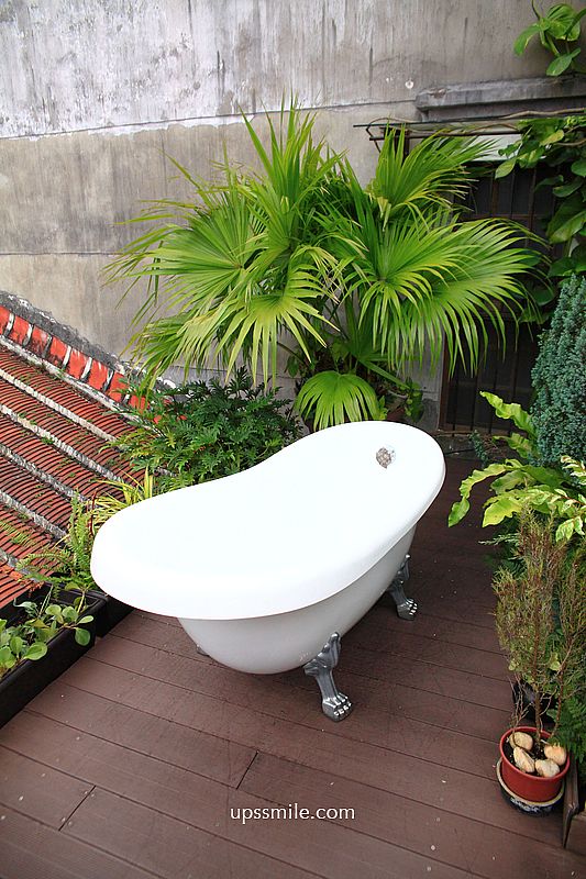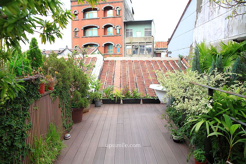 推開二樓木門,可走出戶外,可見紅磚牆屋頂,老屋魅力,非常有特色。