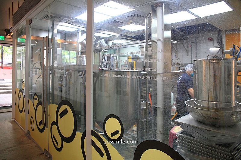 禾乃川國產豆製所的圖片,入內宛如一個小型的觀光工廠,透明化的乾淨廚房,透明櫥窗,詳細介紹,近距離可見豆製品等製作過程,中央工廠規模,全程公開,食用安心。