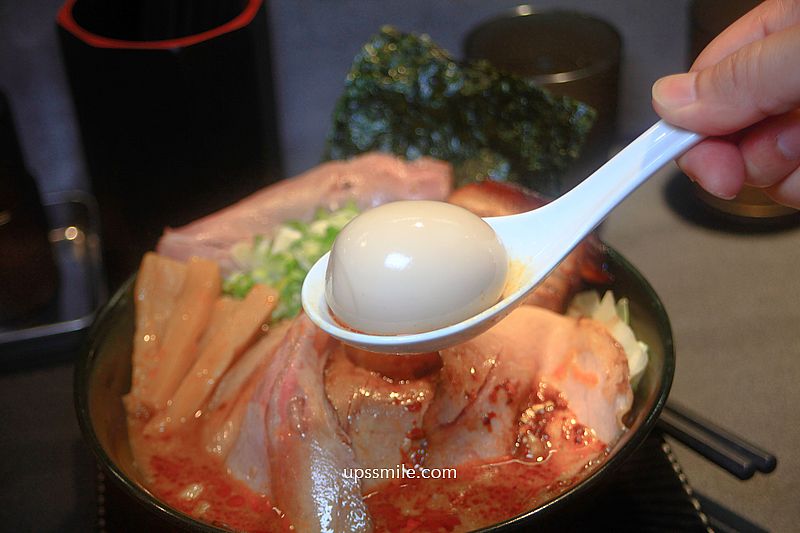 溏心蛋,整個很Q彈,蛋黃相當甜,裡頭有半熟的蛋黃。