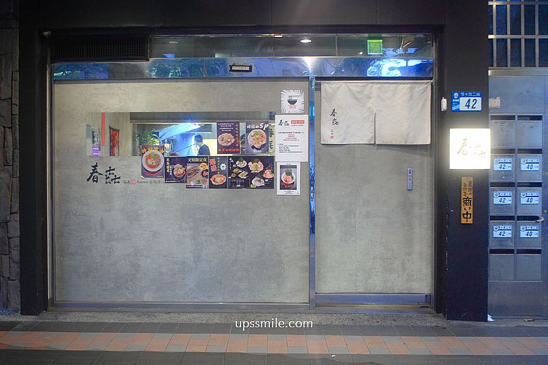 春㐂拉麵職人菜單位於板橋江子翠,靠近板橋大同街口的雙十路二段上,車水馬龍位置,整個門面水泥灰門面,非常低調,只有一小窗口可窺探店內,直接先入內等候,抽號碼牌,門口可見圖文並茂菜單介紹,也有提供外帶服務喔。