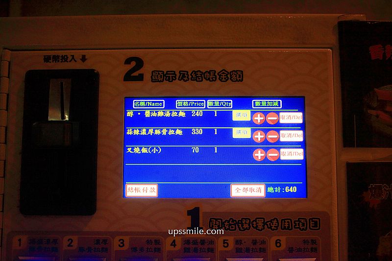 入內左手邊角落,擺放一台點餐機,想吃什麼自己按,只收現金。