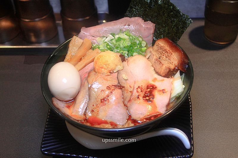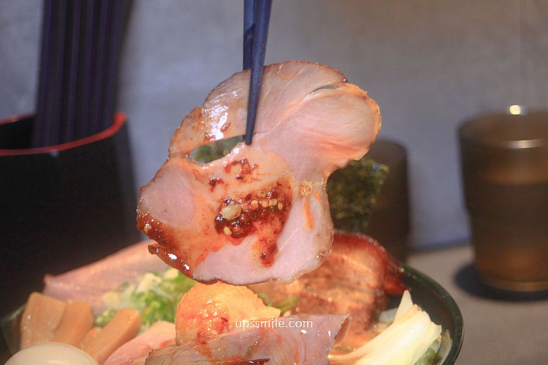 限定蒜辣濃厚豚骨拉麵330元,整碗好豐富,有炙燒五花肉、梅花肉、豬叉燒組合,肉質鮮嫩不乾柴,滿到快要溢出來,超級浮誇,整齊擺放,可見叉燒肉、舒服雞、筍乾、一整塊三層肉,很誘人。
