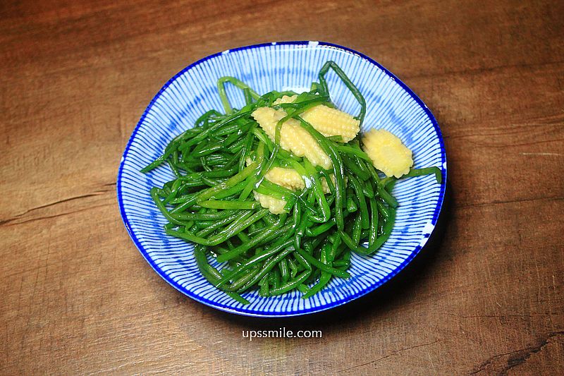 水蓮涼玉60元,水蓮燙過後,加入玉米筍,直接可吃到菜的甜味,脆口好吃。