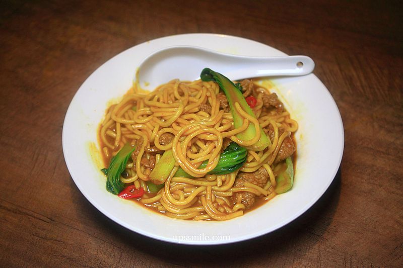 炒咖哩牛肉麵120元,白盤裝好,一上桌濃郁咖哩香氣撲鼻而來,若不想吃麵,也可選擇咖哩炒牛肉搭配白飯吃組合。