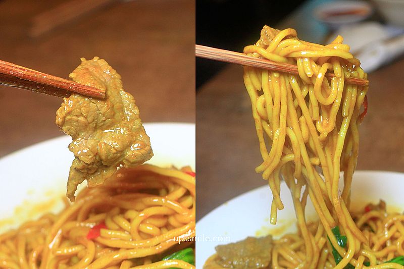 牛肉一整大片,牛肉肉質嫩口不柴,搭配咖哩香氣,好涮嘴。麵條使用油麵來炒,與清燉牛肉麵麵條不同,這種麵吸附咖哩醬汁,帶點辛辣味,咖哩香濃厚實,好好吃,愛吃辣一定要加點辣,更涮嘴。